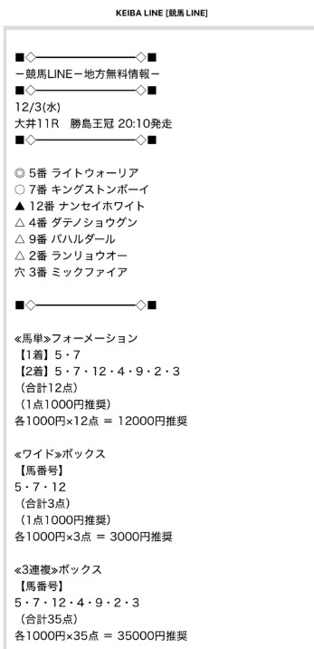 28日(金)の地方競馬無料予想オススメで出てきたのがKEIBA LINE