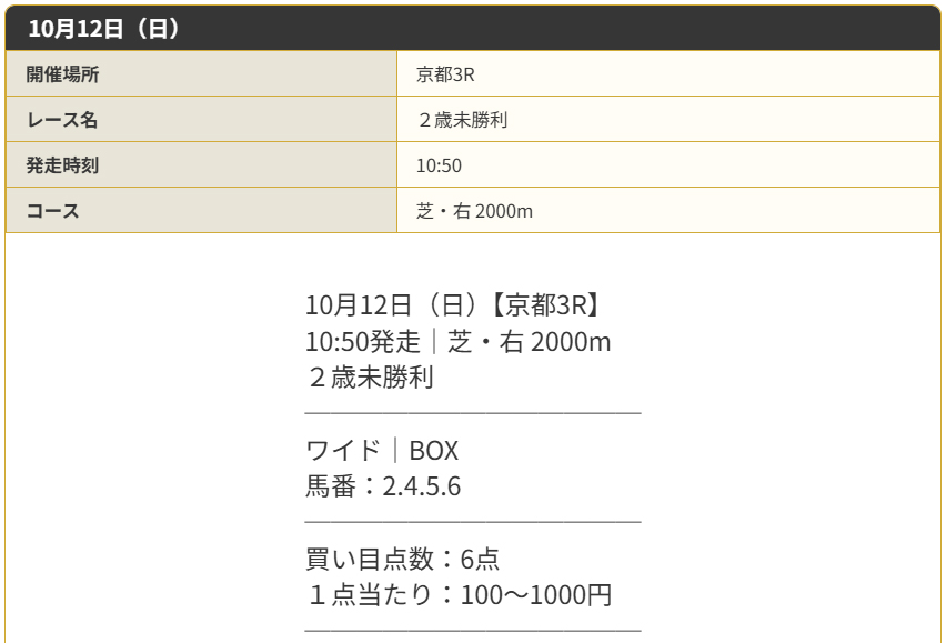 BOXに入れた馬がすべて掲示板内に来る完璧な選定だった。