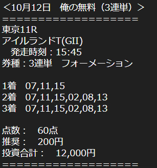 18日(土)の無料予想では買い目点数1点で見事的中!